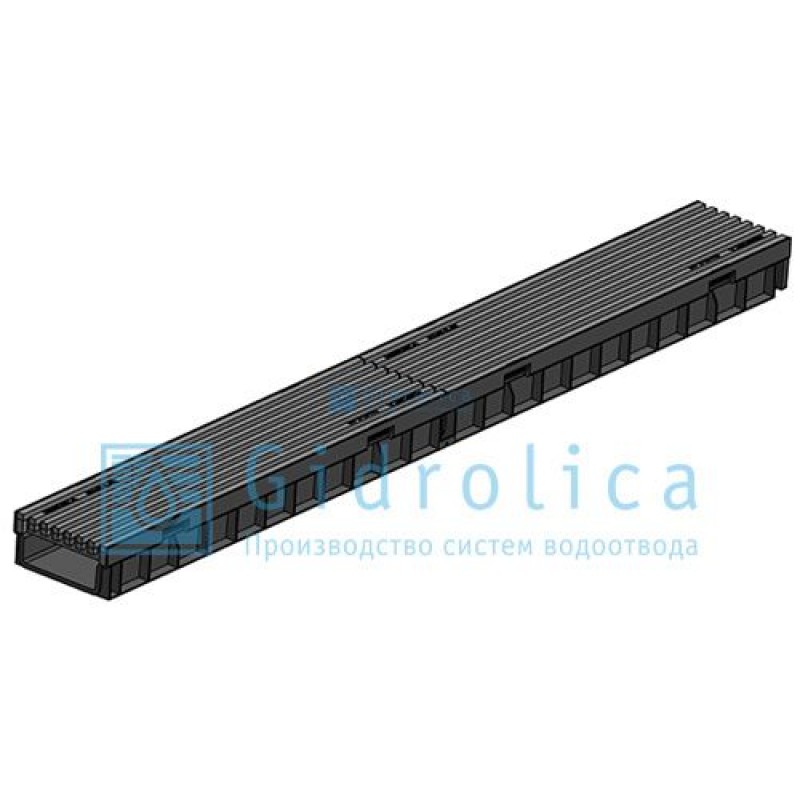 Комплект Gidrolica Light: лоток водоотводный ЛВ -10.11,5.5,5 - пластиковый с решеткой РВ- 10.11.50 пластиковой ячеистой, кл. B125