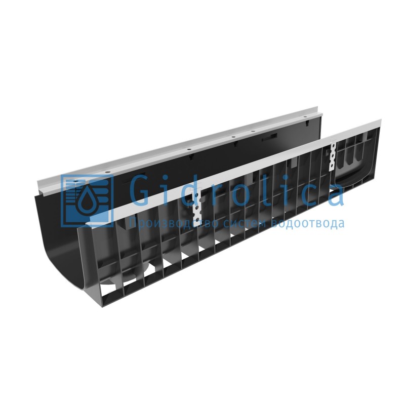 Полипропиленовые лотки условного прохода в 200 мм изготавливаются для использования в системах водоотведения серии Gidrolica® Super или в качестве самостоятельной детали. Изделия усилены стальными оцинкованными насадками на борта и закладными для крепления в бетоне.