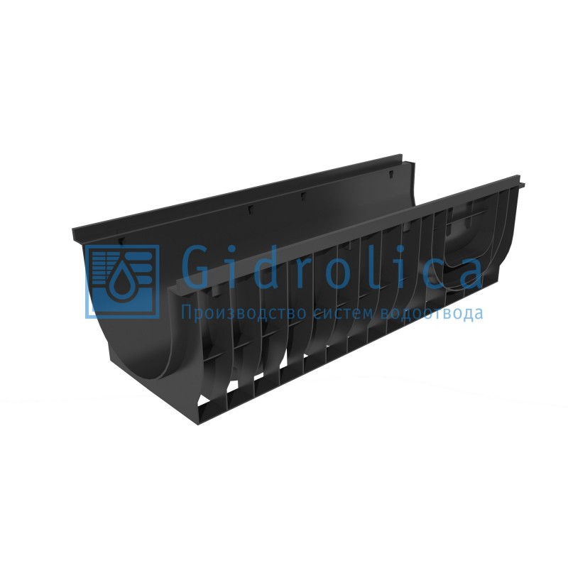 Водоотводящий лоток из морозостойкого прочного пластика предназначен для установки в бетонное основание, сбора и утилизации дождевых, снеговых, талых вод. Обладает условным проходным сечением 300 мм, шириной 380 мм и минимальной высотой в данной серии изделий (294 мм). Может комплектоваться всеми расходными материалами водоотводной системы Gidrolica® Pro.